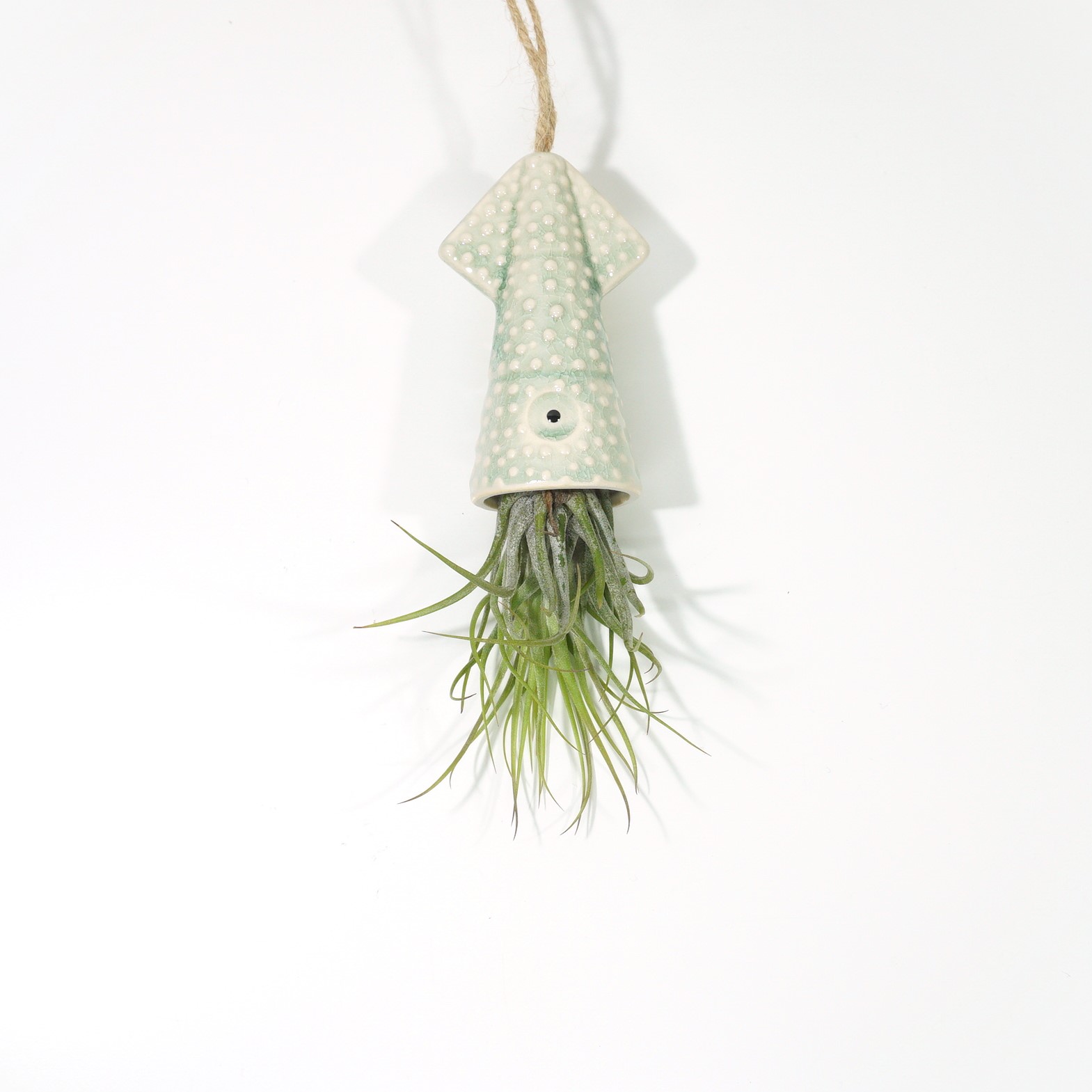 Realça a beleza da tua Tillandsia scaposa com este suporte de cerâmica em forma de lula, ideal para criar uma peça decorativa original e divertida. A planta prende-se na peça com um cordel ou arame, garantindo que fique segura e bem posicionada.
