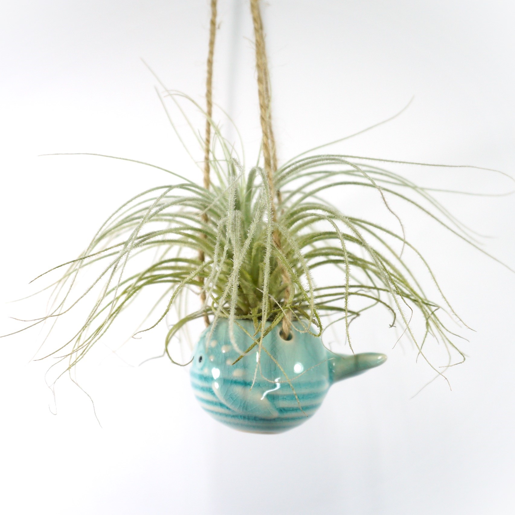 Realça a beleza da tua Tillandsia tectorum com este suporte de cerâmica em forma de peixe-balão, adicionando um elemento decorativo e original à tua decoração. O formato cativante do suporte cria um detalhe divertido e cheio de personalidade no teu espaço.